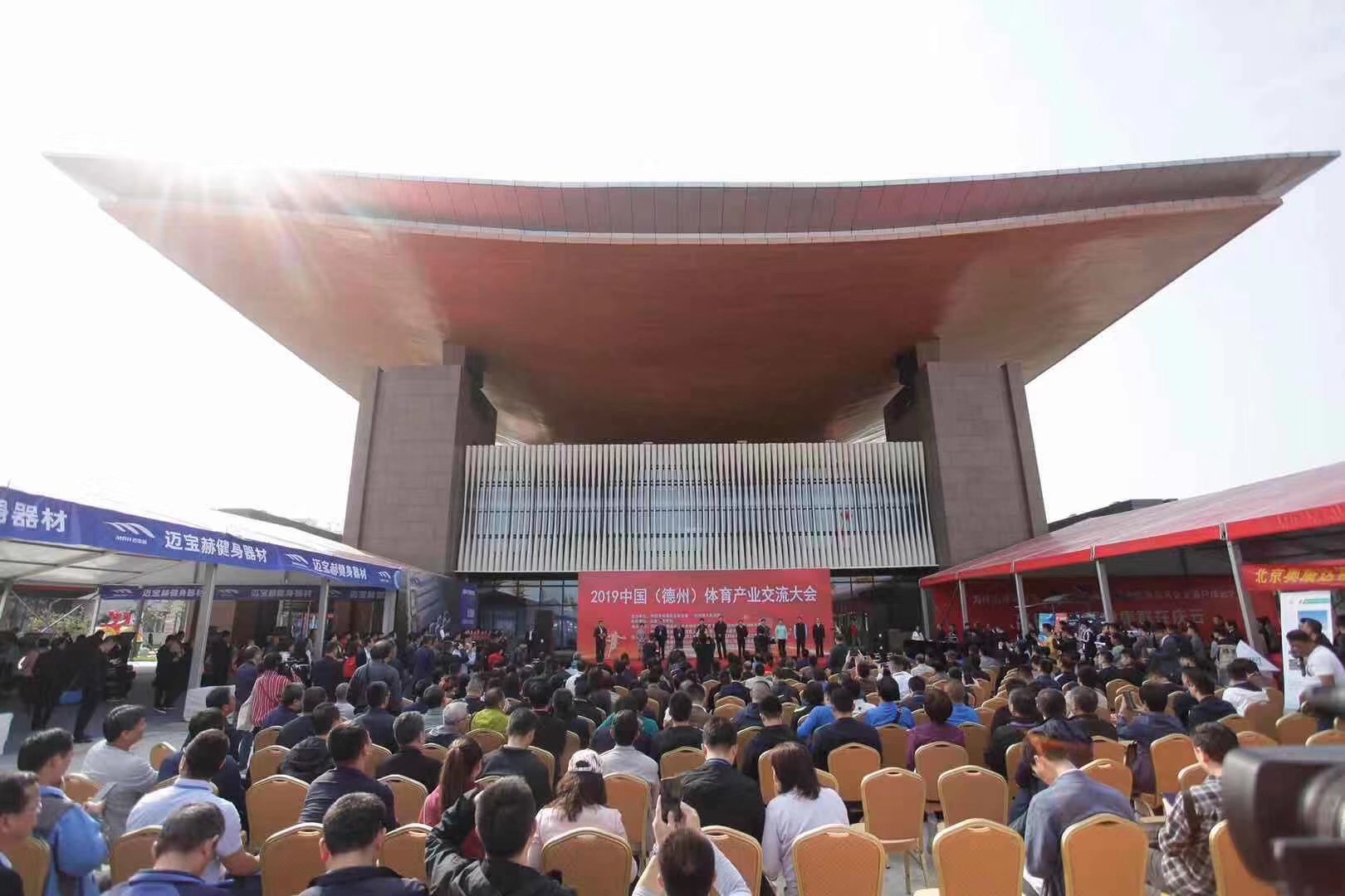10月13日,2019中国(德州)体育产业交流大会在太阳能德州小镇开幕。大会由中国体育用品业联合会与德州市人民政府联合主办,山东省体育局支持,中国体育用品业联合会场馆事业工作委员会等单位共同承办。大会在 “融入京津冀助力新动能”的大背景下,以“德州智造·标准引领,助力体育产业升级”为主题,旨在充分展示区域体育产业发展成果,促进国际国内体育产业交流,扩大招商引资规模,搭建品牌商、渠道商和消费者展示与互动平台。开幕式上,hth·华体产业集团荣获“明星企业”称号。