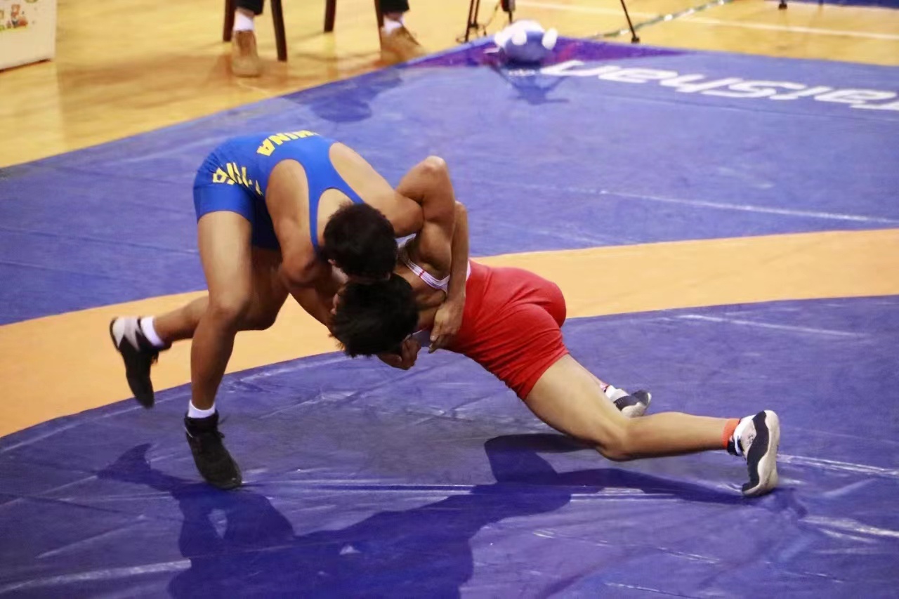 比赛现场,各代表队的摔跤健儿们激烈角逐、灵活移动,在泰山摔跤器材上展示出一系列高难度、大幅度技术动作,充分展现出了摔跤运动的独特魅力。