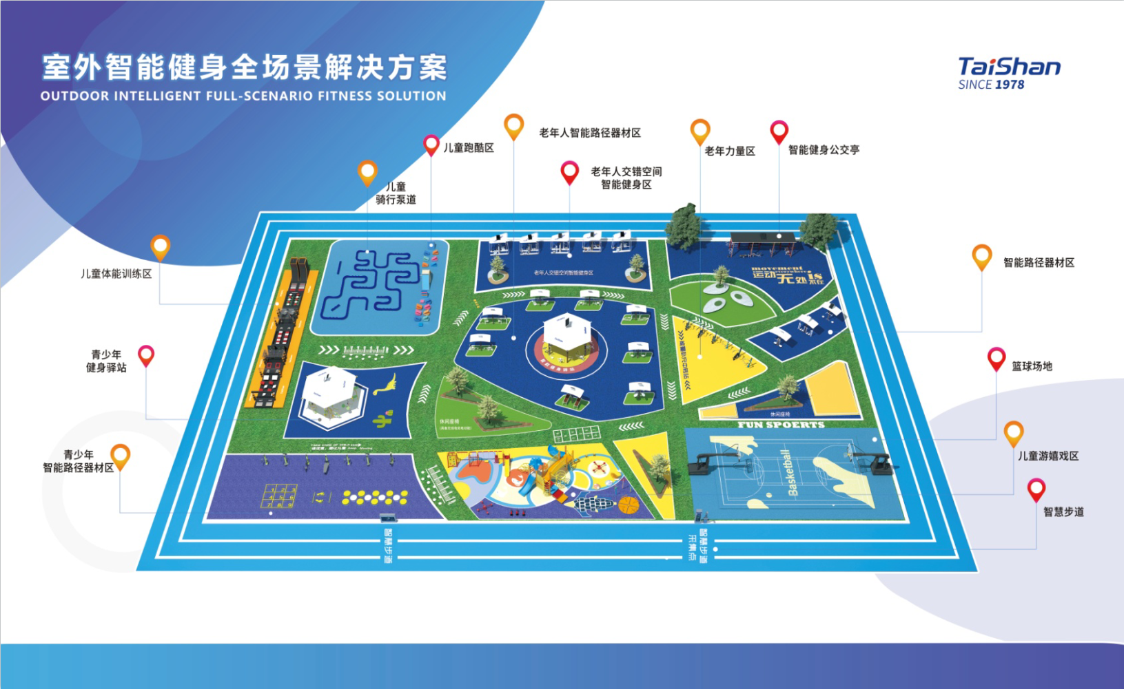 为贯彻落实党中央、国务院《关于构建更高水平的全民健身公共服务体系的意见》,推动全民健身与全民健康深度融合,hth·华体依托全球首创AI智能体质检测一体机、儿童体适能健身器材,以及最新推出的老年以及青少年健身器材等产品,结合新一代智慧体育“互联网+科学健身”应用场景,为全年龄段运动人群提供更多科学健身指导。